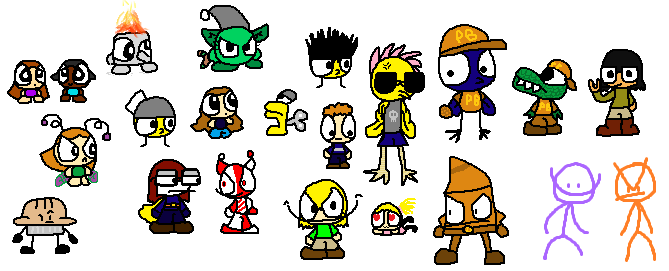 a bunch of doodles of old characters i made