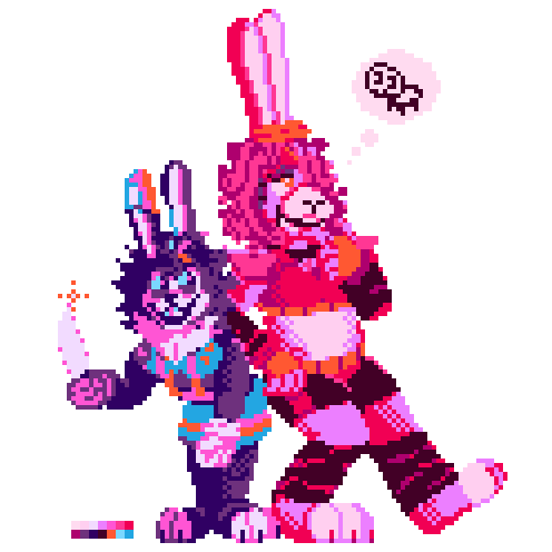 's FNAF OC's, Taffy and Honey Bun respectively. Went all in on this one compared to my other stuff. Hopefully you can tell...