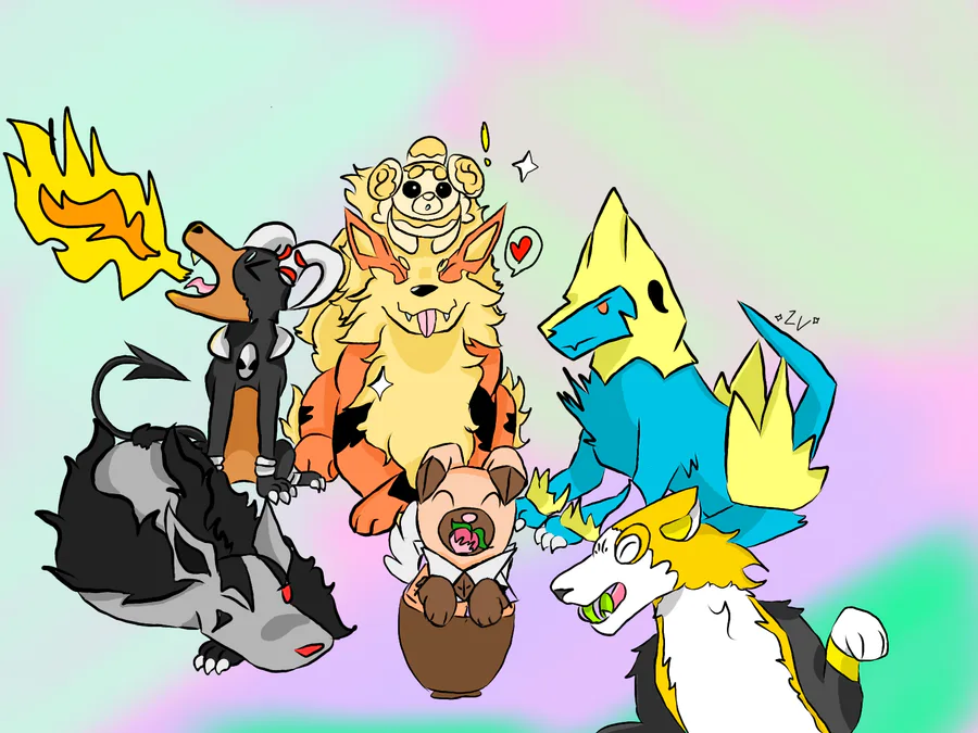 I'm back and I'm going to post more art stuff, so here's my art of some Poke-doggos just chilling.