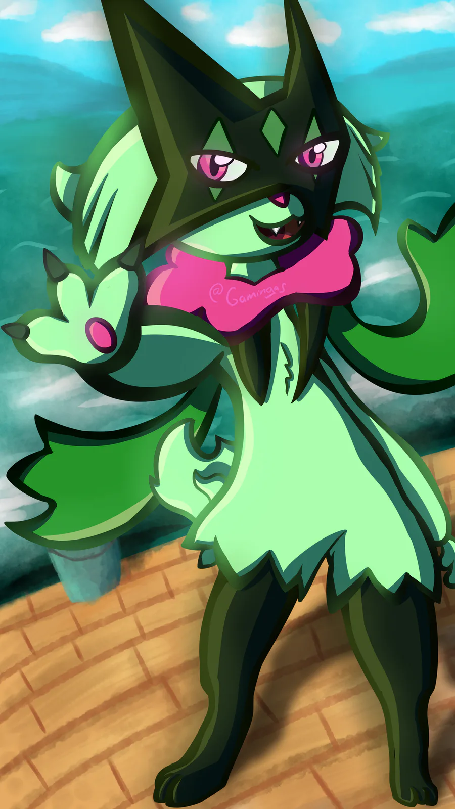A new design for A grass/Electric type Pokémon! Inspired by A friends design. The name of this little guy is Zapple. Let me know what you guys think of it, or if there are any things how we could improve the design itself.