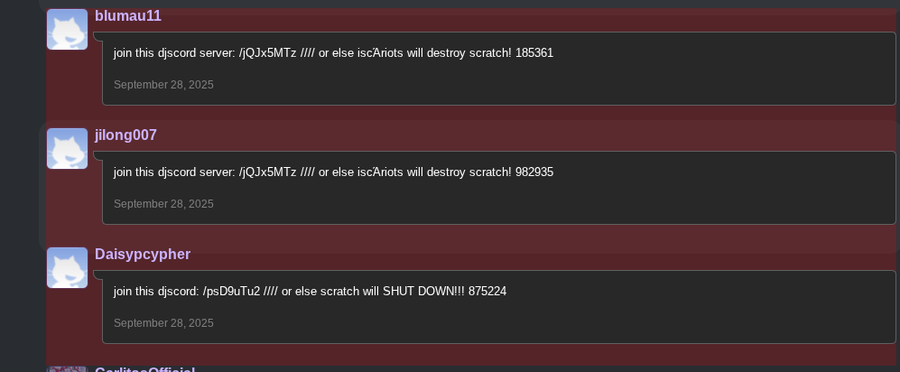 for some reason theres bot on my scratch account now (red bc i reported)