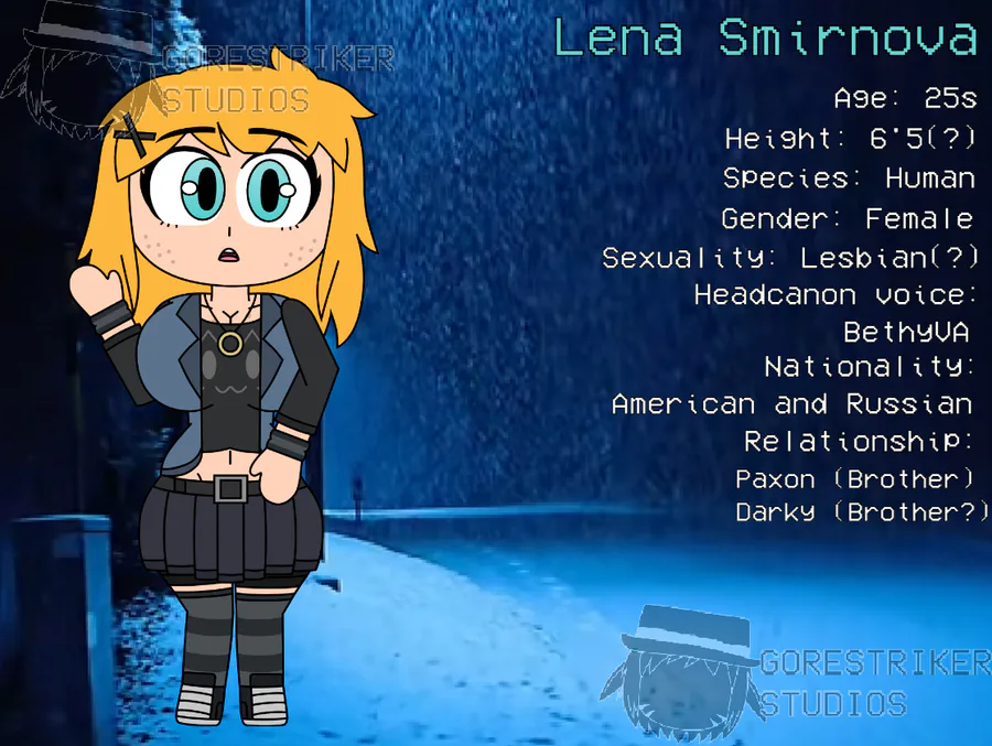 Meet "Lena Smirnova," she's officially Paxon's sister replacement and she's Russian, there's no animatronic version of her for Somniphobia or rebrand yet (still deciding) but this is what you all getting so far.