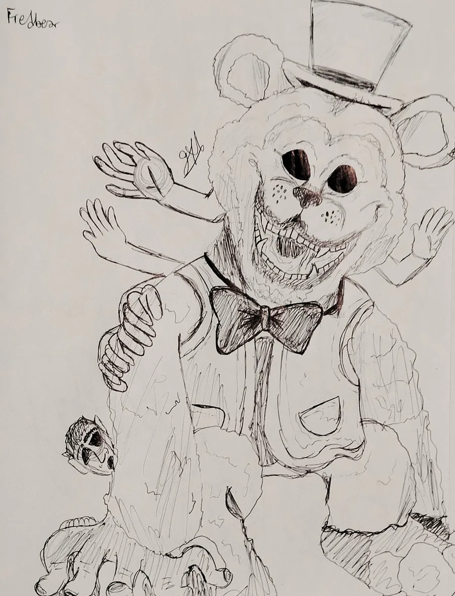 While i was drawing some things for the game, I came across this guy, originaly, the game was going to be a FNaf 4 reimagination with darker characters, I'm thinking of a way that I can connect them and make another game, would yall like it??