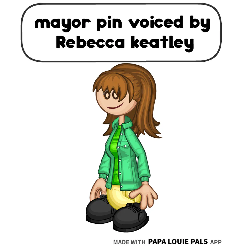 mayor pin is voiced by Rebecca keatley from the coiny show