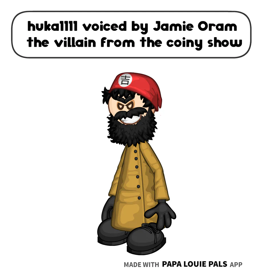 huka1111 is voiced by Jamie Oram the villain from the coiny show