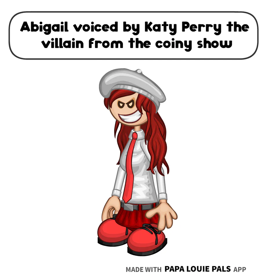 Abigail is voiced by Katy Perry the villain from the coiny show