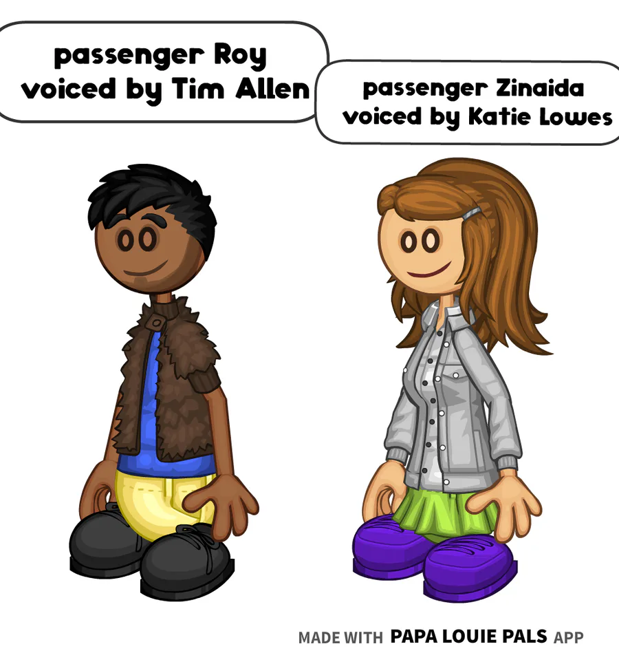 passenger Roy is voiced by Tim Allen passenger Zinaida is voiced by Katie Lowes from the coiny show