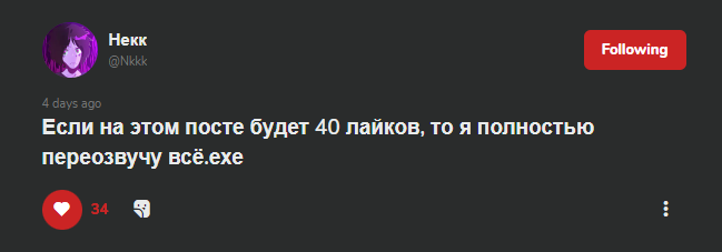 https://gamejolt.com/p/esli-na-etom-poste-budet-40-laykov-to-rgm… Всего 6 лайков, пожалуйста, поднажмите :D
