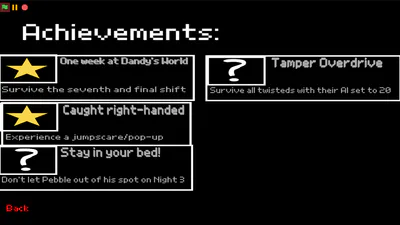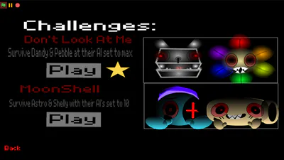 I do not own any of the content demonstrated in this project. All credits go to @Brunch crunch studios (A Roblox Group), and @Scott Cawthon (And Click Team Fusion) The first thing that shows up when you start the game are the name of the creators of Dandy World (Roblox) and Five Night's at Freddy's (Note: @Punisher58 is a scratch user. @Punisher58 has helped with the designs of these twisteds/monsters designs and sound effects to help my game look as closely related and accurate to Dandy's Worlds' content). I was amazed by the original Five Nights at Freddy's and thought it'd be cool to combine a popular Roblox game and FNAF together!
