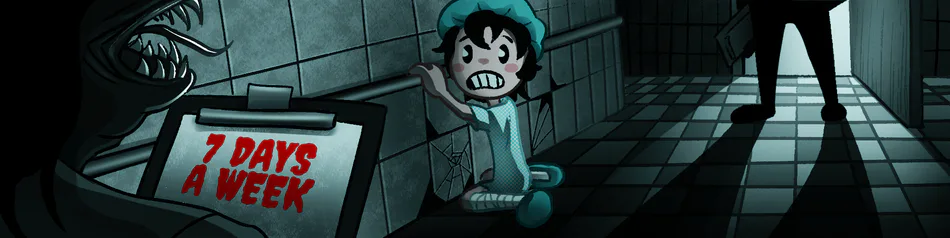 7 Days A Week is an episodic third-person psychological horror game with platformer elements and a rubber hose puzzle game. Stay (or stay for an appointment) in the hospital for as long as necessary, namely 7 days. How does it feel to be fragile? Hold on to the walls and live the everyday lives of patients! Control 6 different characters. Each with its own story and ending. You will have to confront those who want to change your body forever. Unlike many horror games, you can't die in the game as a whole.Just to wake up from another nightmare. But is it true that everything is so scary, disgusting and terrible? Find out the truth, fight for the truth, prove your truth. Go under the knife over and over again, changing your perception of the world. #horror #platformer #rpg #survival #adventure #retro