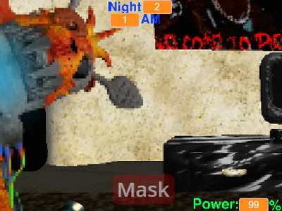 It was, however, completely cheesable, as there were no penalties for using the doors or lights, so they could be kept on/closed at all times, which prevented 4 of the characters from doing anything. Then, one of the characters, The One True Tigy, had been coded with the variable for Tigy's position instead of his own, meaning that The One True Tigy did not function and Tigy functioned at double speed. Golden Tigy's mechanic relies on you flipping your cameras, so you could just cheese the entire game by holding the doors closed and keeping the mask on for the other potential threat, Final Tigy. To add insult to the injury, the game was endless.
