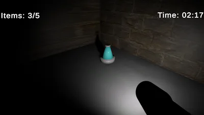 Find 5 randomly placed items in a dark basement within 4 minutes.