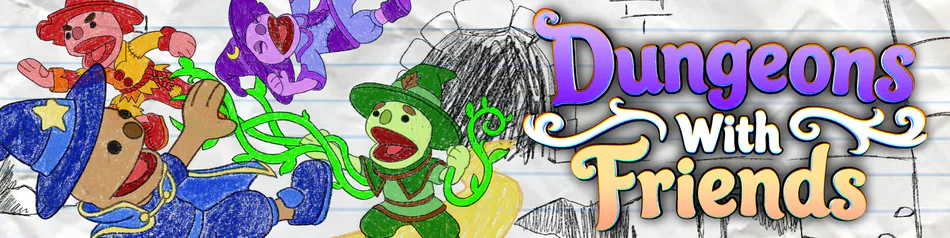 Dungeons With Friends is a chaotic co-op action roguelike where you and your friends play as puppet wizards shouting spells into your microphones to fight through a tower full of evil robots.