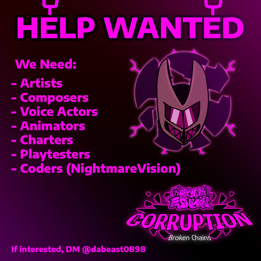 Broken Chains is an alternative take on the popular FNF mod that is still being developed on. That being Corruption.