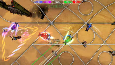 Collidalot will make you feel like gladiators in cyberpunk infused Mad Max arenas. Grab the wheel of jet powered hover cars, grinding and slamming their way to domination.