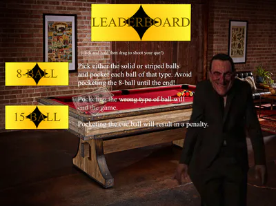 The game consists of a main game with 5 unique nights as well as a challenging custom night, 2 unlockable stars in the main menu, and a free roam casino sidemode where casino games can be played and unlocked by beating the nights of the main game. The more money you win from the games the higher up you are on the leaderboard (the top 5 players also earn a bonus star visible in the main menu). There is also a bar to grab a drink or 2 from and many secrets galore!!!
