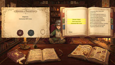 At its core, Dungeons & Diagnoses is a game about interpretation. The challenge is not just hearing what characters say, but understanding what they mean. Fantasy curses, magical afflictions, and heroic suffering often hide fear, obsession, loneliness, burnout, delusion, or self-destruction. A correct diagnosis may genuinely help someone. A bad one may ruin a life, unleash chaos, or create a disaster that spreads far beyond your office walls.