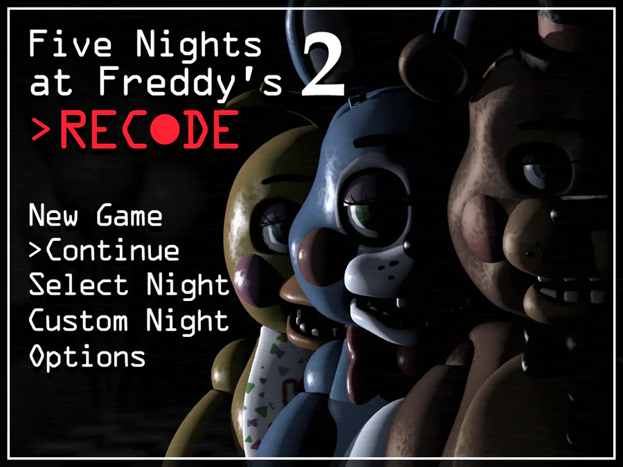 These recodes aim to improve the original core trilogy of FNAF games while staying as faithful to the source material as possible. With these recodes you can expect to find improved visuals, polished gameplay, and more settings than the original counterparts to make the games easier to come back to, re-experience, and simply re-enjoy!