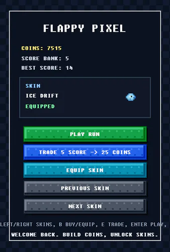 Fun little game i made in about a month in python! Flap around get score trade score for coins and get skins! #fangame #other #retro