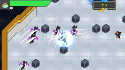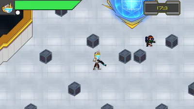 HyperStar is an online asymmetrical game where you can choose which side you play: be one of the Intergalactical Heroes of the Universe's heroes and play as a team or by yourself to protect the HyperStar in a Top-Down Shooter or play a Match-3 game as the mastermind behind Hox Companies and combine tiles to build robots which are sent to steal the crystal through an warp hole whenever enough energy is gathered.
