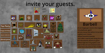 "oh no! myguy got stuck in the magical fun playhouse again! can you rescue him before its too late? explore over 3 levels, defeat fearsome enemies and collect several pets along the way! this educational adventure game utilizes high-tech 3D graphics and state of the art soul retrieval units! voted best educational title of 2006."