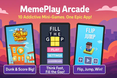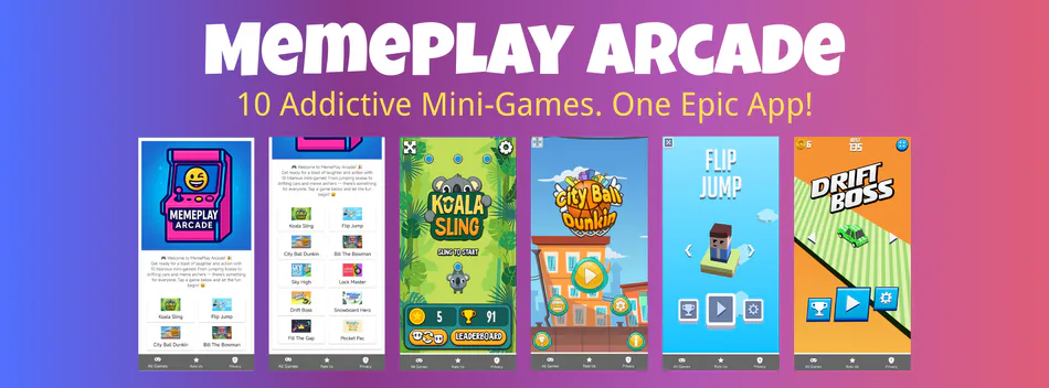 MemePlay Arcade – 10 Funny Mini Games in One App