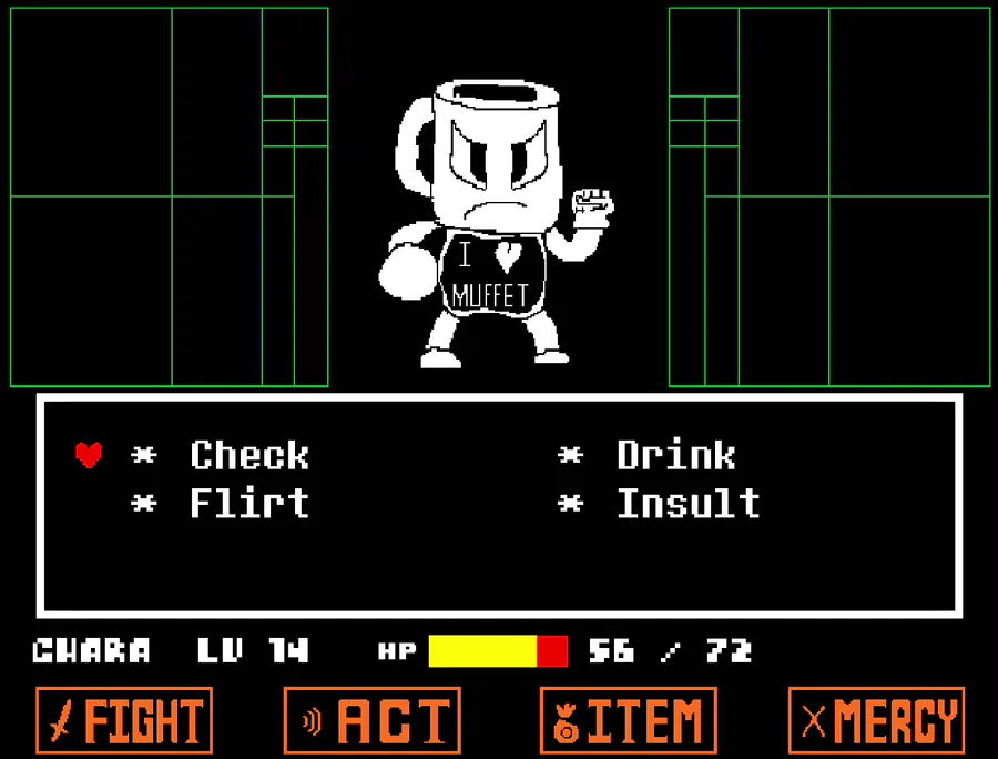 After killing Muffet, a cup comes in-Muffet's number 1 fan, and tries to stop you. You are on a genocidal route and are seeking for more XP. #action #fangame #undertale #other #strategy