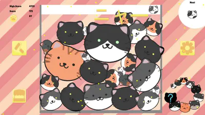Neko No Yama is an arcade game where you stack differents cats, if two cats of the same type colide, they fusion and create the next cat of the list. Can you reach the final cat of the list without destroying your actual stack?