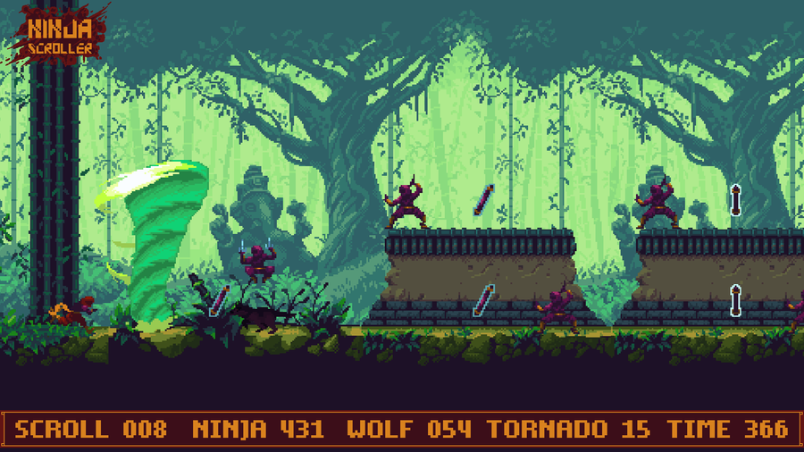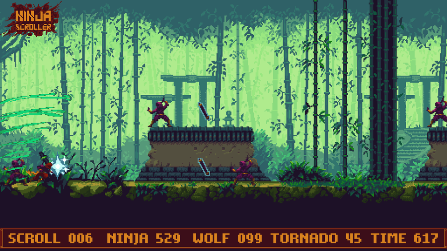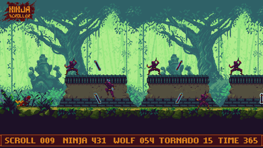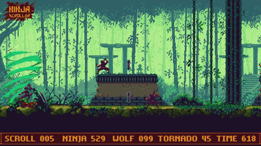 Ninja Scroller is a challenging #PixelArt #ActionRunner game with a #Retrogaming vibe
