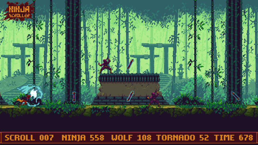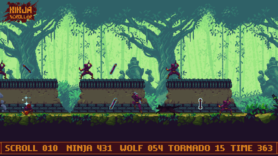 Ninja Scroller is a challenging #PixelArt #ActionRunner game with a #Retrogaming vibe.