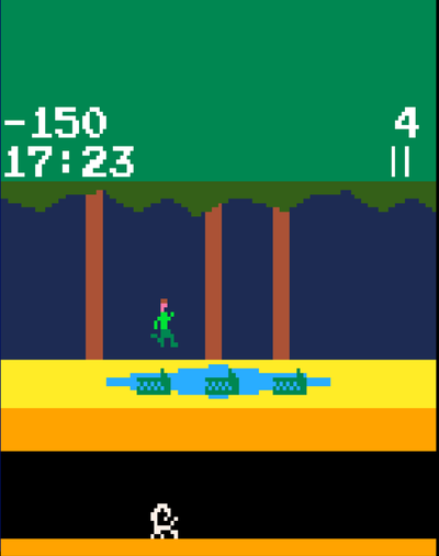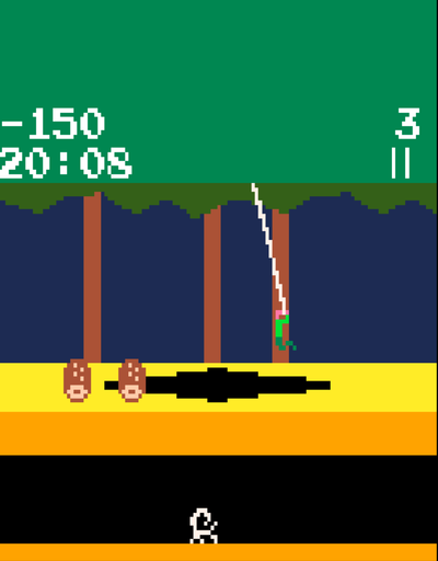The player controls Pitfall Harry and is tasked with collecting all the 32 treasures in a jungle within 21 minutes. The world consists of 256 screens which are horizontally connected in a flip screen manner.