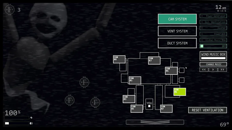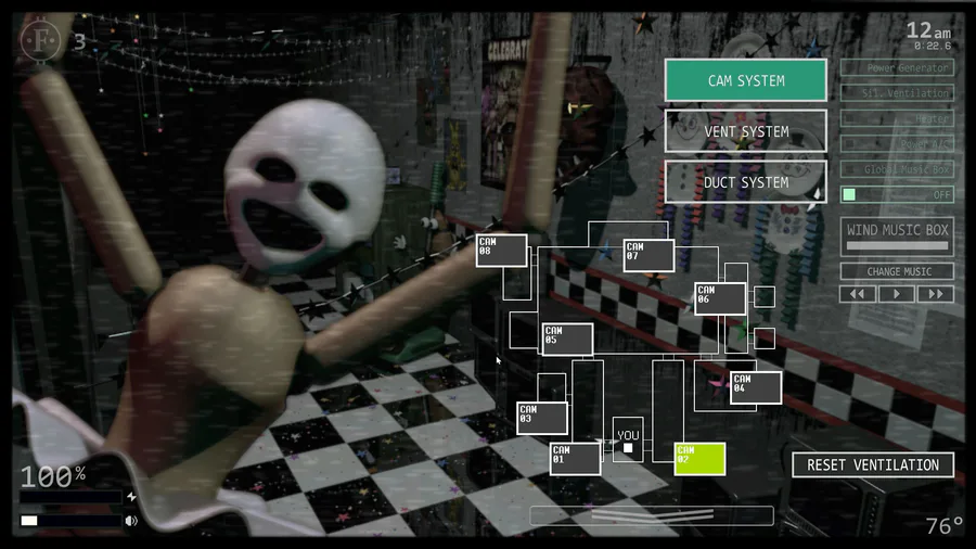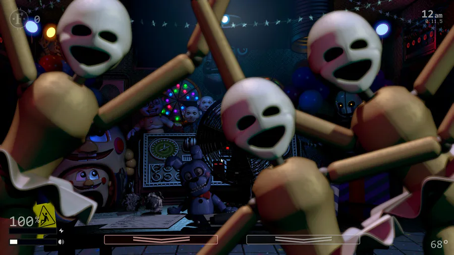 Test your skills against the 50 selectable animatronic foes spanning between seven different Five Nights at Freddy's games. The options for customization are nearly endless as you mix and match any assortment of these loved animatronic characters and set their difficulty anywhere from 0-20. From the office desk, you must manage two side doors, two vents, as well as two air ducts, all of which lead directly into your office.