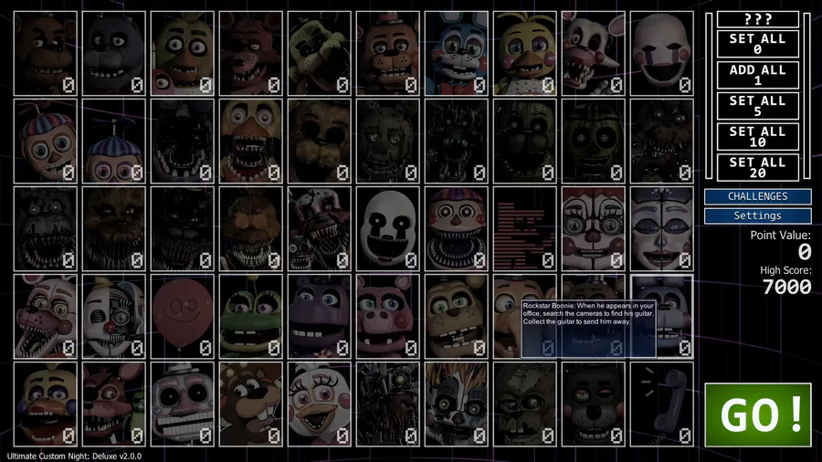 UCN: DELUXE is a modified and improved version of the ultimate FNAF mashup "Ultimate Custom Night"