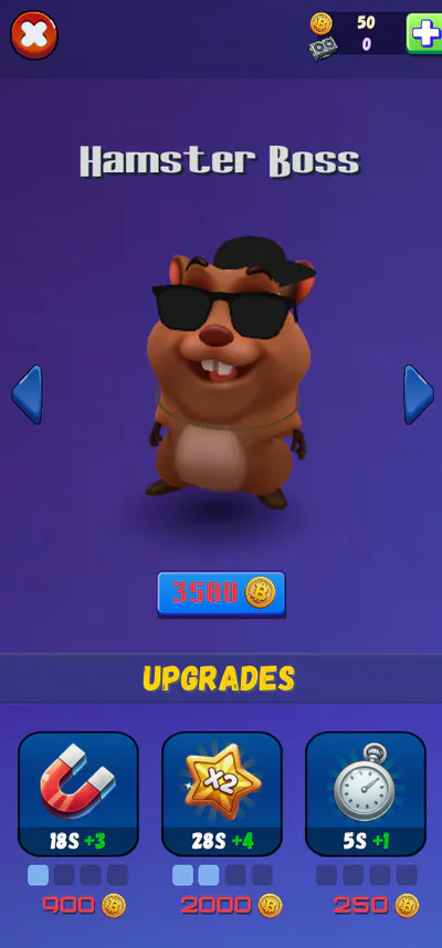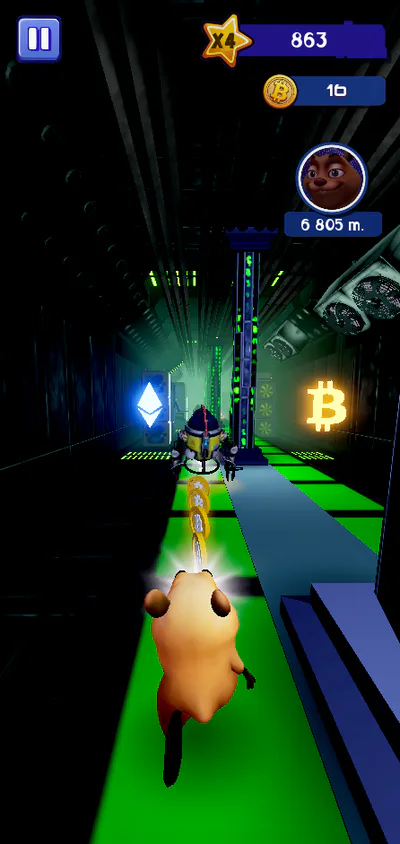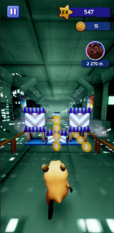 Run dodging obstacles, complete missions, buy new skins and upgrade your hamster in this exciting crypto world!