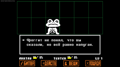 Привет! Давно искали русификатор, я решил заняться этим для мода Undertale Together. За основу взят лучший (по моему мнению) Русификатор от Zone of Games. На скриншотах вы можете видеть прогресс перевода.