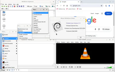 A Debian-based GNU/Linux distribution with a Windows-like interface, the main feature of which is the implementation of a desktop environment under Wine. Also, in addition to the main graphical shell, the distribution includes the Mutter window manager from Gnome 40. Thus, the distribution has a hybrid interface between Wine and Gnome. This distribution is mainly designed to run Windows applications, in this case 32-bit ones, there is also the ability to run native Linux programs.