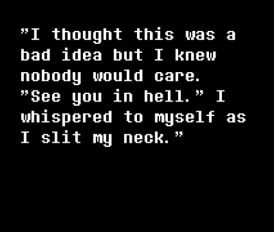 ...I tried to make it look like the media was drawn by a small child to make the "suicidal" notes more creepy. (never thought i would put suicide into my games, i am a dark person.)