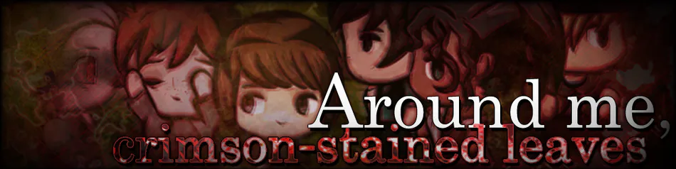 "Around me, crimson-stained leaves" (Alrededor mÃo, hojas manchadas de carmesÃ) es un juego corto de misterio y horror que incluye elementos de rpg y exploración. Poco después de entrar a "Crimson Leaves", el protagonista se encontrará solo pues todos sus amigos han desaparecido. Al explorar el pueblo él descubrirá que algo terrible está sucediendo, al ser testigo de un asesinato y darse cuenta de que la vida de todos está en riesgo.