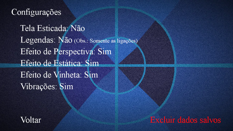 Um menu de configurações para ativar ou desativar a tela cheia (somente na versão para Windows), a tela esticada (somente na versão para Android), as legendas das ligações do começo das noites, o efeito curvado de perspectiva, o efeito de estática, o efeito de vinheta, a Rich Presence do Discord (somente na versão para Windows) e as vibrações (somente na versão para Android).