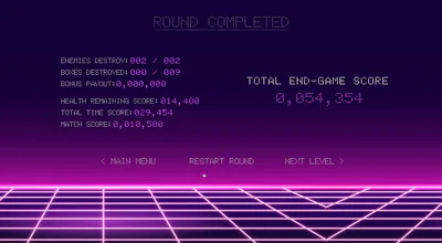 The faster you complete the run, the more enemies you destroy, and the more health you retain — the higher your score climbs.
