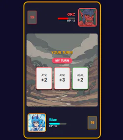 🃏 Card System: Draw cards to unleash attacks (ATK) or recover health (HEAL).