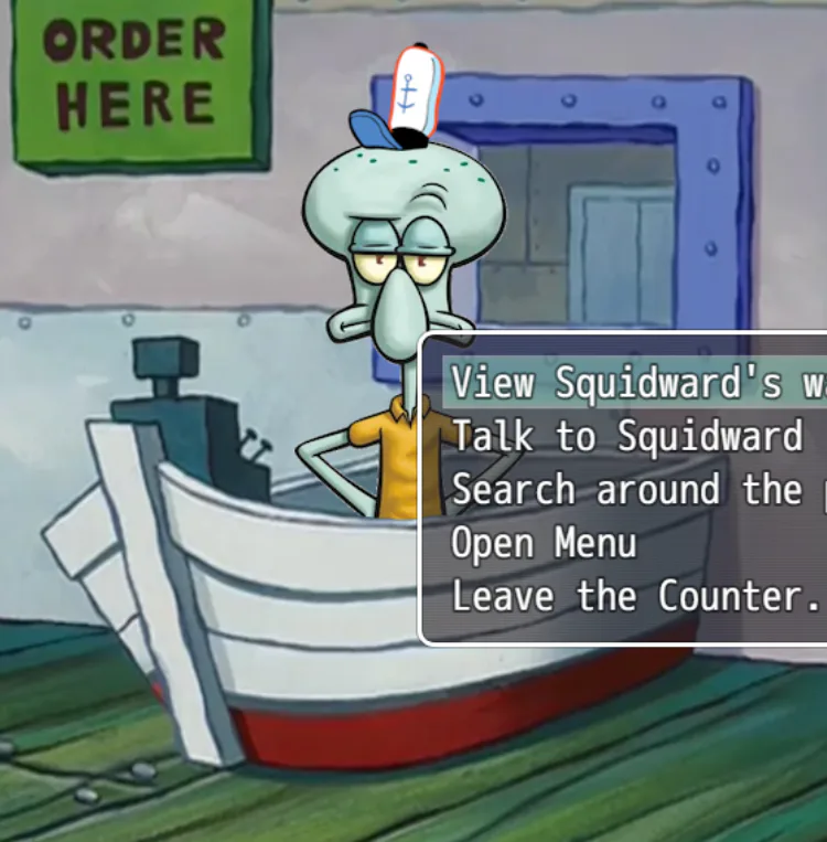 Dayshift At The Krusty Krab is a point and click style adventure game inspired by Dayshift At Freddy's by DirectDoggo where YOU (Yes, you meaning the one reading this!) have gotten a job at the famous Krusty Krab in Bikini Bottom! But, the Health Inspector is coming over later and you need to make sure that you make the restaurant be in superb condition so he gives you a good rating, will you make the Krusty Krab look the best it's ever been? Or will you fail miserably? You decide!