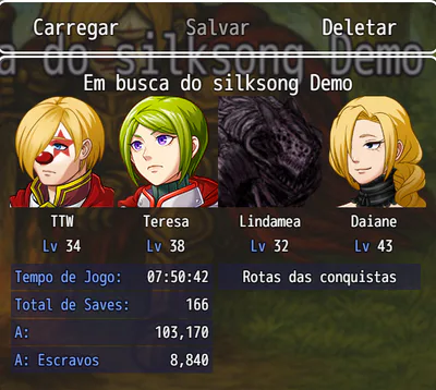 Em busca do Silksong É um RPG em turnos feito no RPG Maker MV, com foco em paródia e humor.
