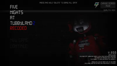 "Five Nights at TubbyLand 2: RECODED" will have a similar gameplay to the original game, with smoother framerate, better graphics and (maybe) different mechanics. This version will include:
