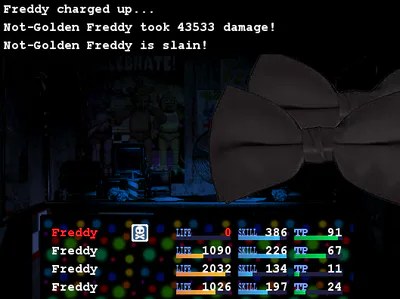 Do you like freddy and FNAFB 1? well thankfully this shitty game make's it so everyone is FREDDY!, the party members, the shopkeeper, even the bos-... oh well i guess the party hats and cameras arent freddy but whatever,
