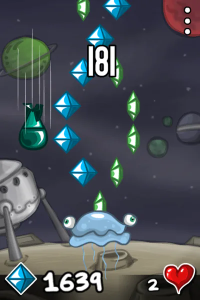 What's better to do on a foreign planet than collecting gems? That's right. Avoiding meteors! That's the story of this silly jellyfish.