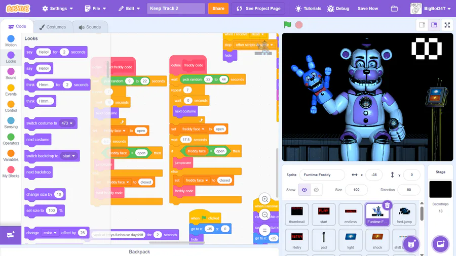Funtime Freddy: When his face plate opens, Press SPACEBAR or Click him to close his face plate.