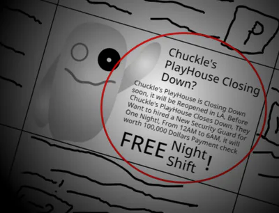 A FNAF Fangame. You have found a job in Chuckle's Playhouse, for only one night, it looks simple, Right?, well Chuckles move and wanders at night, so, becareful.