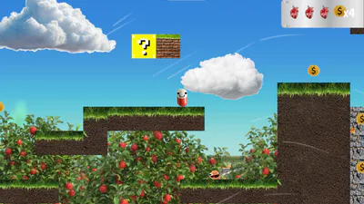 Es un juego de plataformas simple en el que hay que recoger monedas y matar enemigos. El juego tiene dos niveles, uno fácil y otro difĂcil. Si te quedas atascado en un bloque, pulsa <<R>> y el nivel se reiniciará (Ăşsalo con cuidado, es una buena herramienta).