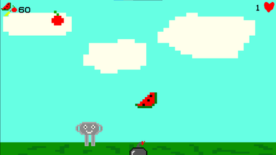 A dynamic arcade game in which the player needs to catch falling fruits and avoid bombs. Test your reaction, score points and set records! 🚀